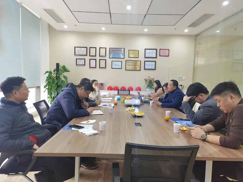3月5日,杭州市节能协会秘书长包优祥、浙江安耐杰科技股份有限公司总经理助理许华丽、杭州倍捷科技有限公司总经理金磊、杭州三瑞机械有限公司总经理邢超、浙江匠心智联软件技术有限公司总经理王坚华前往杭州广东会净化设备股份有限公司进行走访交流。公司销售总监唐绍宏、销售总监助理彭欢、技术室主任朱影、研究院经理洪川和相关部门负责人员陪同参观并参加座谈交流。